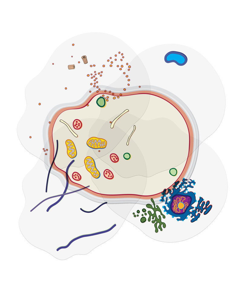 Explore animal cell with transparencies.