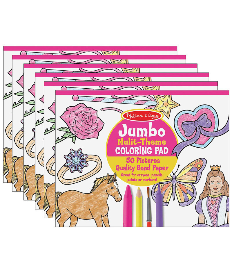 Fifty beautiful pictures leave lots of room for pink! Oversized 11" x 14" premium white bond paper feature outline drawings of flowers, princesses, horses and more. Each sheet in this large extra-large coloring book for kids is printed on one side only, so the colorful masterpieces won't smudge. The pages tear out cleanly to allow more than one child to color simultaneously and for proud display! Sold as a pack of 6 coloring pads.