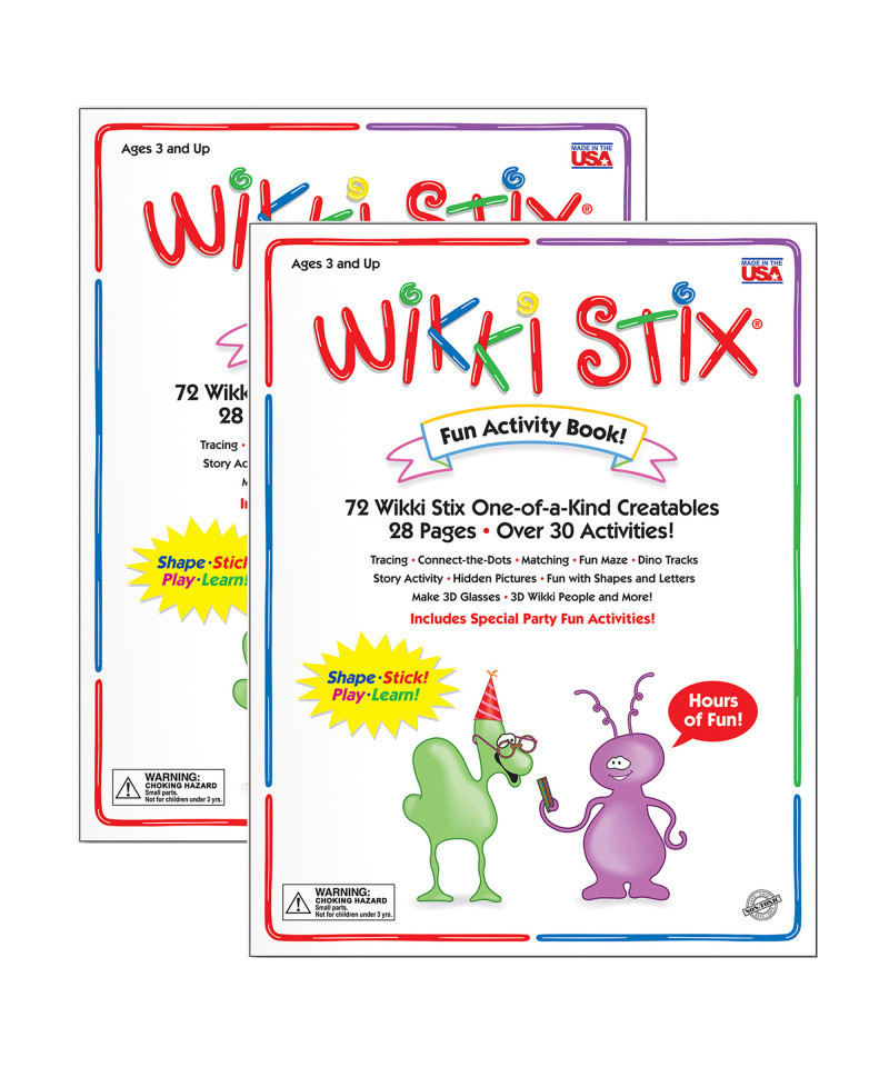 Activity Book includes 72 Wikki Stix to make fun activities mistake-free! Easy to use Wikki Stix provide hands-on engagement for matching, counting, shapes, letters, numbers in sequence and simple free-form art. Each book includes 28 pages. Sold as 2 books.