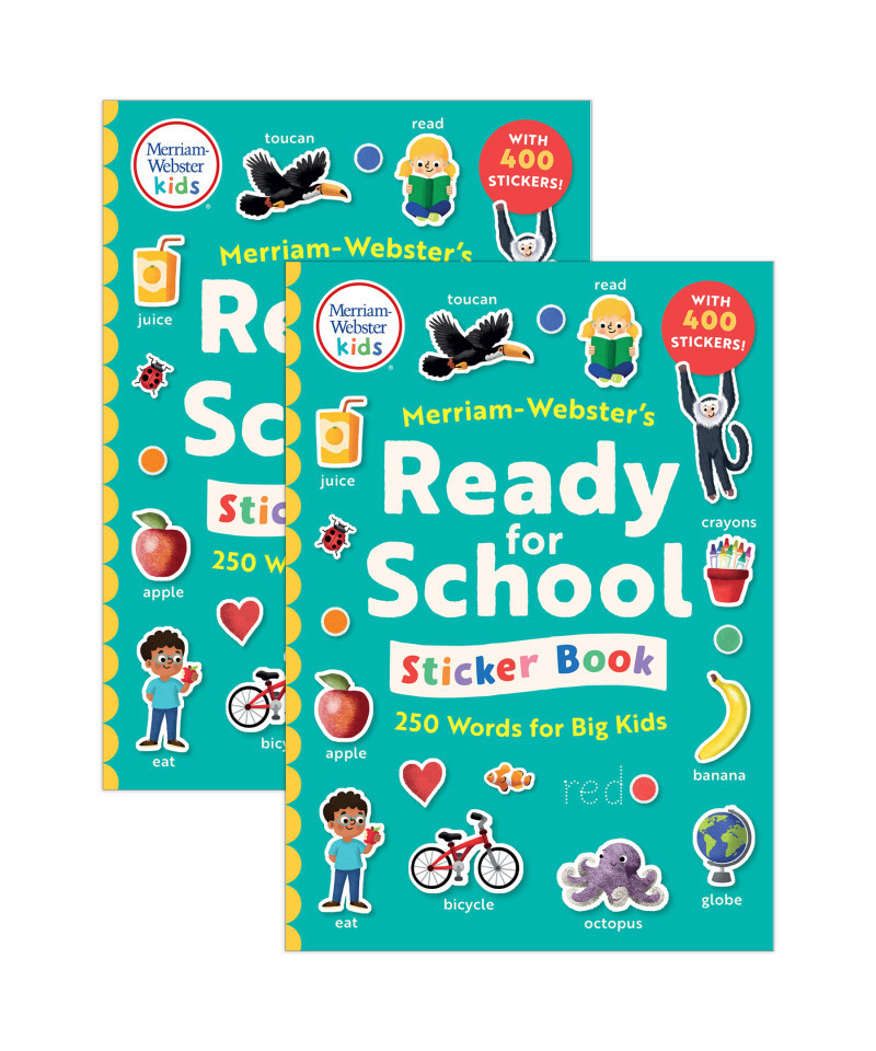 Prepare for the adventure of starting school with Merriam-Webster's playful book featuring 400 stickers! Label the classroom objects, name the animals at the zoo, identify different shapes and colors, and much more... Merriam-Webster's Ready-for-School Sticker Book is the ultimate activity book to help kids start school with confidence. Bursting with color, the book includes words to describe the classroom, the lunchroom, the playground, the park, the zoo, the farm, and the weather, as well as key vocabulary to identify colors, positions, textures, and shapes. There are plenty of activities to complete: You can match pictures with their labels, place stickers on backgrounds, trace letter forms, and practice puzzles! Sold as a pack of 2 sticker books.