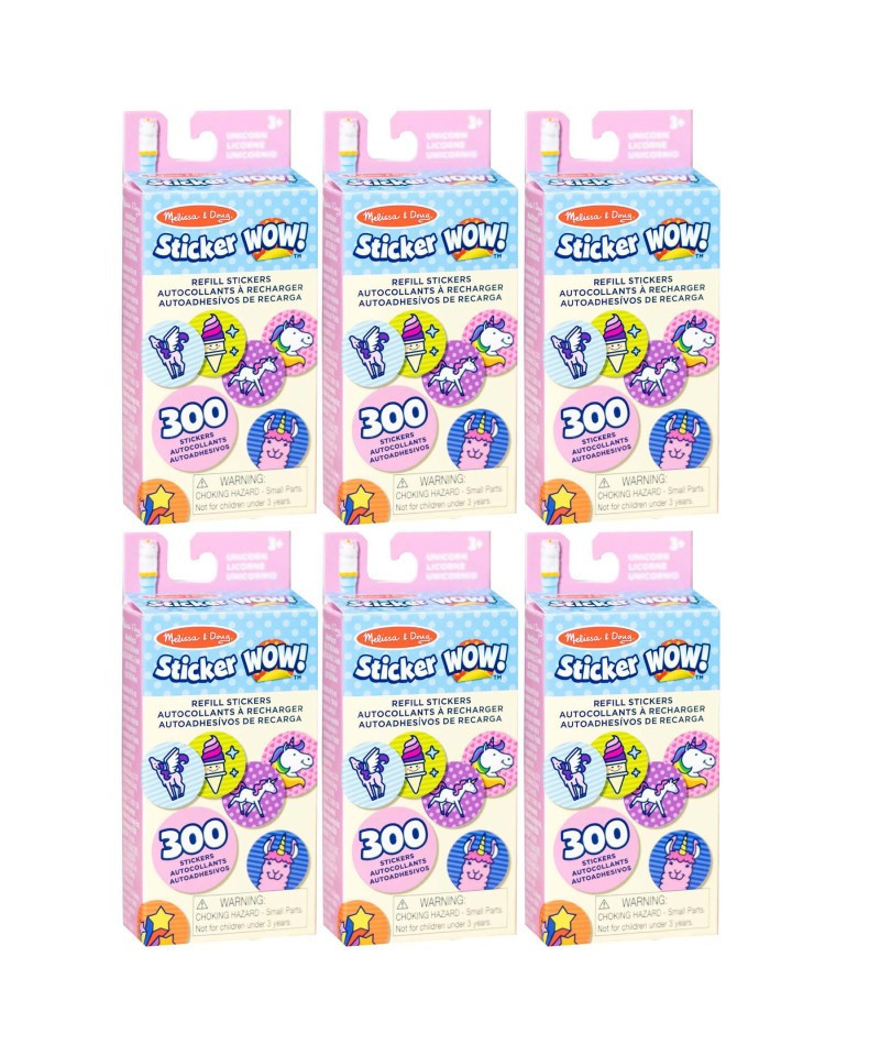 Melissa & Doug Sticker WOW!™ is a whole new way to play with stickers! Pop each of the convenient sticker stacks of 300 assorted Unicorn fantasy-themed stickers into any Sticker WOW!™ Sticker Stamper cartridge, and stamp away, anywhere, anytime! With 100 unique designs in every sticker stack, each sticker stamped is a surprise. Sticker WOW!™ Refill Stickers are easy to remove and are great for creative arts and crafts projects. Unicorn Refill Stickers are a natural complement to the Sticker WOW!™ Cupcake the Unicorn sticker stamper, but they are compatible with all the cute and collectible Sticker WOW!™ sticker stampers (sticker stamper not included). Sticker WOW!™ (patent pending) promotes fine motor skills, encourages creative play, and it's satisfying, fidget fun! Sold as 6 refill packs for a total of 1800 stickers.