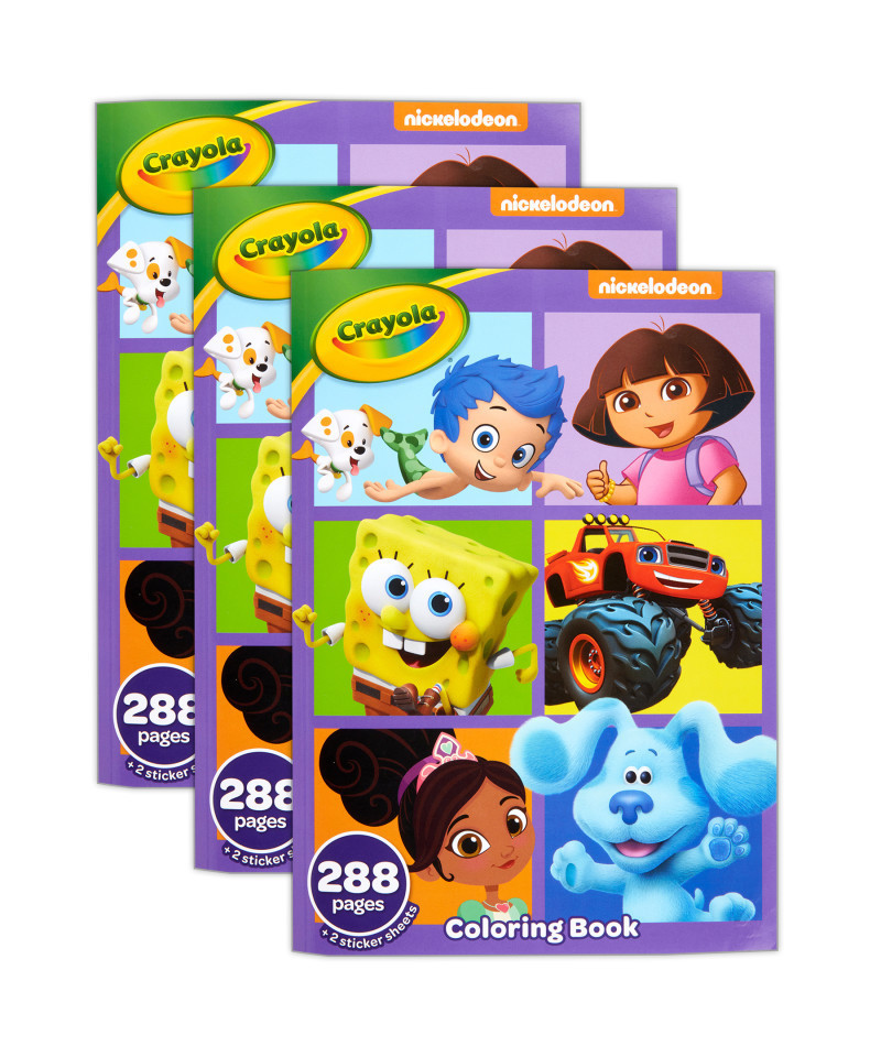 - KIDS COLORING BOOK: Sold as a pack of 3, each giant coloring book features a whopping 288 pages of art depicting scenes of Blue's Clues, Bubble Guppies, Butterbean's Café, Shimmer and Shine, Blaze, Dora, and Nella the Princess Knight.