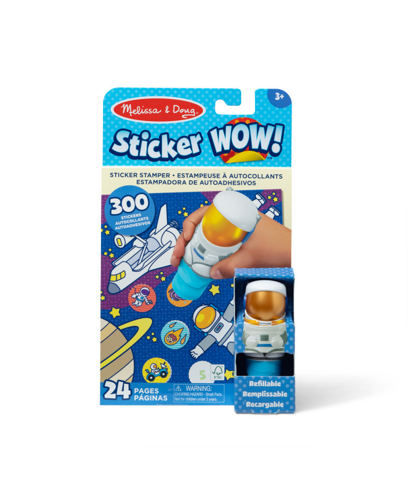 - Melissa & Doug Sticker WOW!™ is a whole new way to play with stickers – use the cute, collectible character to stamp space-themed stickers on the 24-page Astronaut activity pad and on other creative art projects