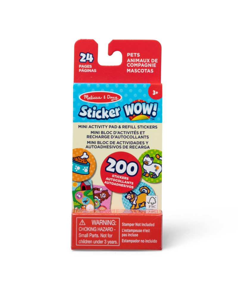 - Refill any Melissa & Doug Sticker WOW!™ sticker stamper (not included) with 200 assorted pets-themed refill stickers, and stamp, stamp, stamp, anywhere, anytime