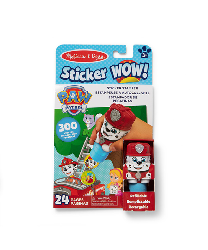 - Melissa & Doug Sticker WOW!™ is a whole new way to play with stickers – use the cute, collectible character to stamp Paw Patrol-themed stickers on the 24-page Paw Patrol activity pad and on other creative art projects