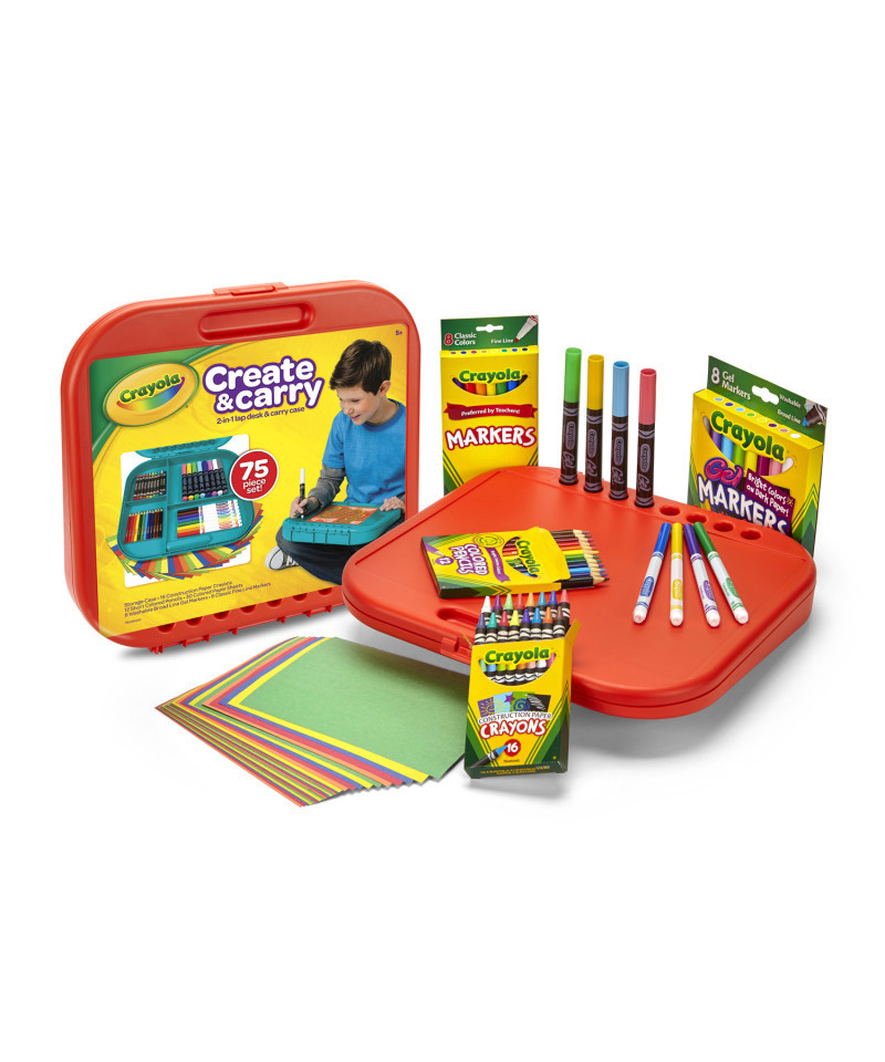 Crayola Create & Carry is the 2-in-1 art storage case and lap desk that contains a variety of cool Crayola art tools! Includes 16 Construction Paper Crayons, 8 washable Gel-FX Markers, 8 classic Fine Line Markers, 12 Short Colored Pencils and 30 sheets of Construction Paper. This all-in-one carry case makes a great gift!