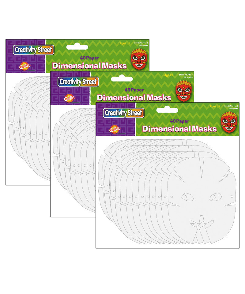 Our affordable masks ship flat in a convenient 40 pack. Enough for the whole class - or a party! Paper masks are die cut and ready to decorate with paint, colors markers, glitter, gems, feathers & more. Once the masks are decorated and allowed to dry simply fold, tape and add elastic or string and they are ready to wear. Each pack contains 40 masks. Sold as 3 packs for a total of 120 masks.