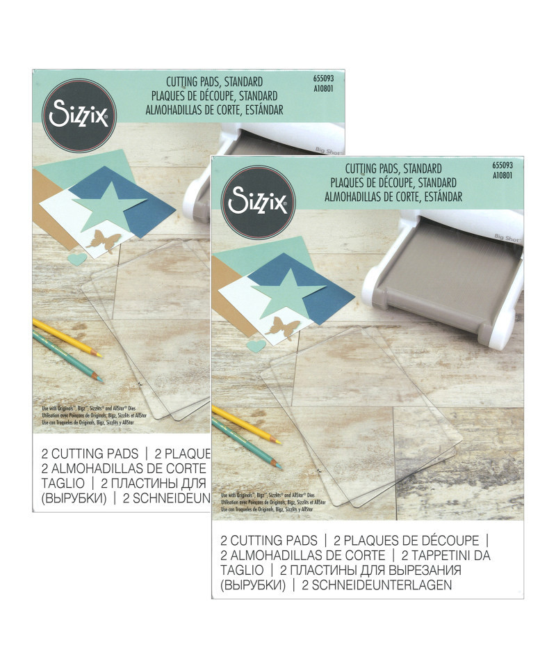 Each pair of Cutting Pads was specially designed for use in the BIGkick, Big Shot and Vagabond machines (sold separately). Constructed of high-quality polycarbonate plastic, these see-through Cutting Pads allow for easy die-cutting of Sizzix steel-rule dies (Bigz, Movers & Shapers, Originals and ScoreBoards) in the BIGkick, Big Shot and Vagabond machines. Simply sandwich the die and material to be cut between the Cutting Pads and roll through the machine. A Premium Crease Pad may be needed in place of one Cutting Pad when die-cutting Sizzix steel-rule dies containing crease rule. Measures 8-3/4" x 6-1/8" x 1/8". Each pack includes 2 cutting pads. Sold as 2 packs for a total of 4 cutting pads.