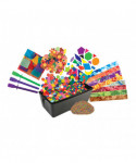 Our assortment of unique materials is perfect for collages and 3D projects. Keep leftovers in the reusable plastic storage container. The guide offers open-ended and directed activities. Includes: Tissue Squares, Mosaic Squares, Colored Rice, Bright Buttons, Paper Popz, Geo Shapes, Crafty Strips, Goo Spreaders, and a plastic storage container. Ages 4+ Made in USA