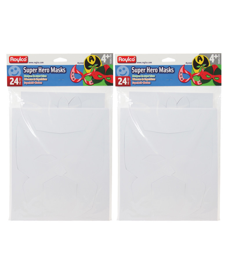 Suit up and save the world! Help children get creative with Super Hero Masks! The sturdy cardstock masks come in six different designs for endless hero possibilities! Encourage children to create their own hero and write and/or act out their story for the class. Invite the children to a superhero costume party where they can display their creations. Use the masks as a great addition to a home-made Halloween costume. Superheroes are a child's favorite, and this product is sure to be as well. Each pack includes 24 masks in 6 different designs, measuring 6-1/2" x 7-3/4"up to 7-1/2" x 9-1/2" (16.5 x 19 cm up to 19 x 24 cm). Sold as 2 packs for a total of 48 masks.