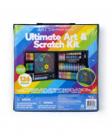 Art 101 Budding Artist's Ultimate Art and Scratch Art Kit with 126 Pieces in an handy organizer case includes a variety of artistic tools for young artists. This kit features a portable case which allows artists to stay organized and continuously create whether at home or on the road! Also included are five 10 inch by 10 inch scratch art sheets. Three of these come with a design printed on the sheet, which you can trace with your scratch tool to reveal a colorful rainbow underneath. Use the two blank sheets to create your own designs and patterns! In addition to scratch art fun, this case includes markers, crayons, watercolor cakes, and colored pencils. These artistic tools are designed with kids in mind, making them easy for little hands to grip and use. The water-based ink formula in our markers makes them washable off non-porous surfaces. Let your child explore the variety of mediums in this case for hours of creative fun!