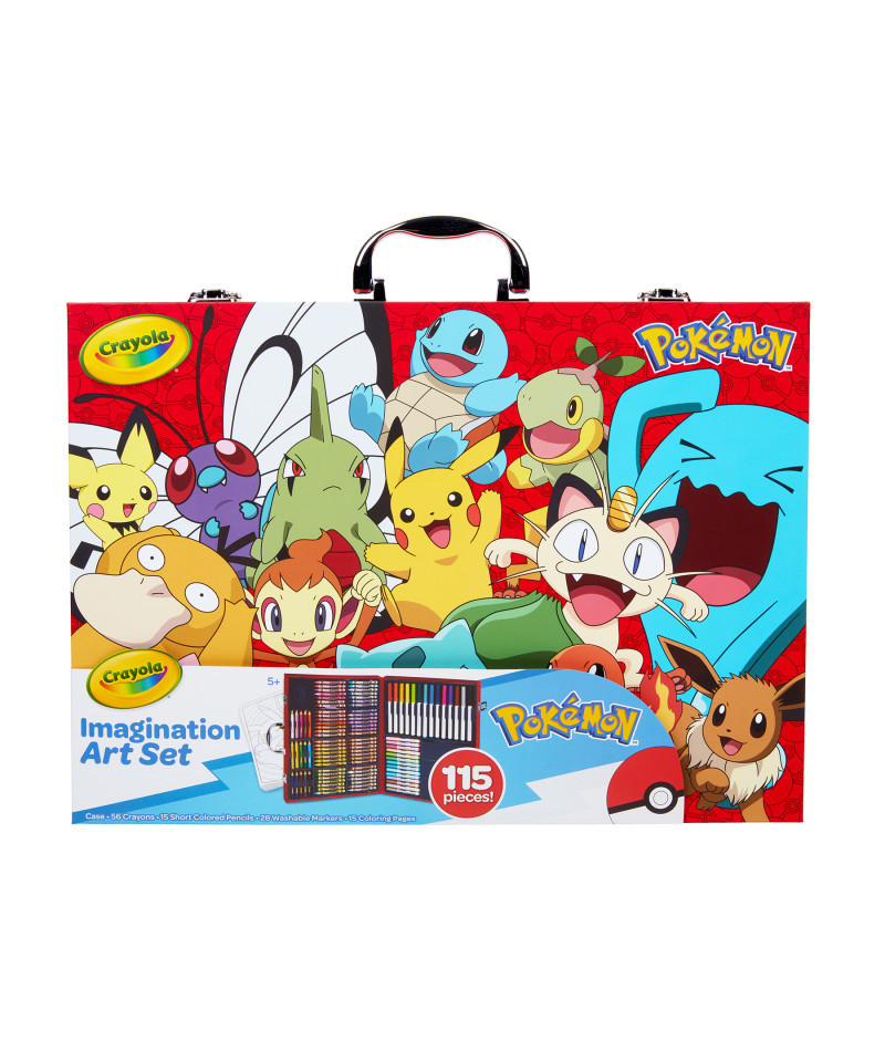 Fans of the Pokémon Trading Card Game, animated series, movies, and video games will love this themed art set featuring their favorite Pokémon partners on the art case and coloring pages. The Pokémon Imagination Art Set includes 56 Crayons, 15 Short Colored Pencils, 28 Washable Markers, and 15 Coloring Pages. Kids and Pokemon collectors will enjoy the 115 essential art tools, perfect for drawing, coloring, and crafting. The case features organized storage for all the supplies on the inside with favorite Pokémon friends like Pikachu, Bulbasaur, Larvitar, Meowth, and Psyduck on the outside. Makes a fun birthday or holiday gift you can rely on for big smiles and hours of imaginative fun. Ideal for Pokémon fans and kids, age 5 and up.