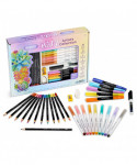 - Featured in this collection, you will receive 50 art supplies including 20 Artist Drawing Pages, 12 Colored Pencils, 9 Brushtip Markers, 5 Pearlescent Cream Sticks, 1 Ultra Fine Marker, 1 Sketch Pencil, 1 Pencil Sharpener, and 1 Eraser