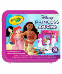 - DISNEY PRINCESS COLORING ART CASE: This 75-piece art set includes 24 Crayons, 10 Fine Line Markers, 10 Broad Line Markers, 16 Coloring Pages, 10 Blank Pages, 3 Character Stands, 2 Sticker Sheets, 1 Disney Poster, and a Reusable Plastic Case.