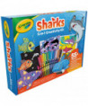 Dive into a sea of creativity with the Crayola Sharks 5-in-1 Creativity Kit! This art kit for kids features a treasure trove of activities that will keep your little marine explorer engaged and inspired. With 12 Crayola Crayons and 18 Pip Squeaks Skinnies, your child can color the 15 included coloring pages, bringing the underwater world to life in vibrant hues. The ocean themed art set also includes 2 buildable paper sharks and 2 Pop Out Fish, ready to swim into your child's imagination. The silhouette sticker sheet adds an extra layer of fun, allowing kids to decorate their creations with cool ocean themed designs. The shark set is complete with 2 sheets of sand paper, 2 sheets of cold press paper, and a pipette, providing a variety of tools for endless creative possibilities. This Crayola Sharks Art Kit is recommended for children ages 5 and up.