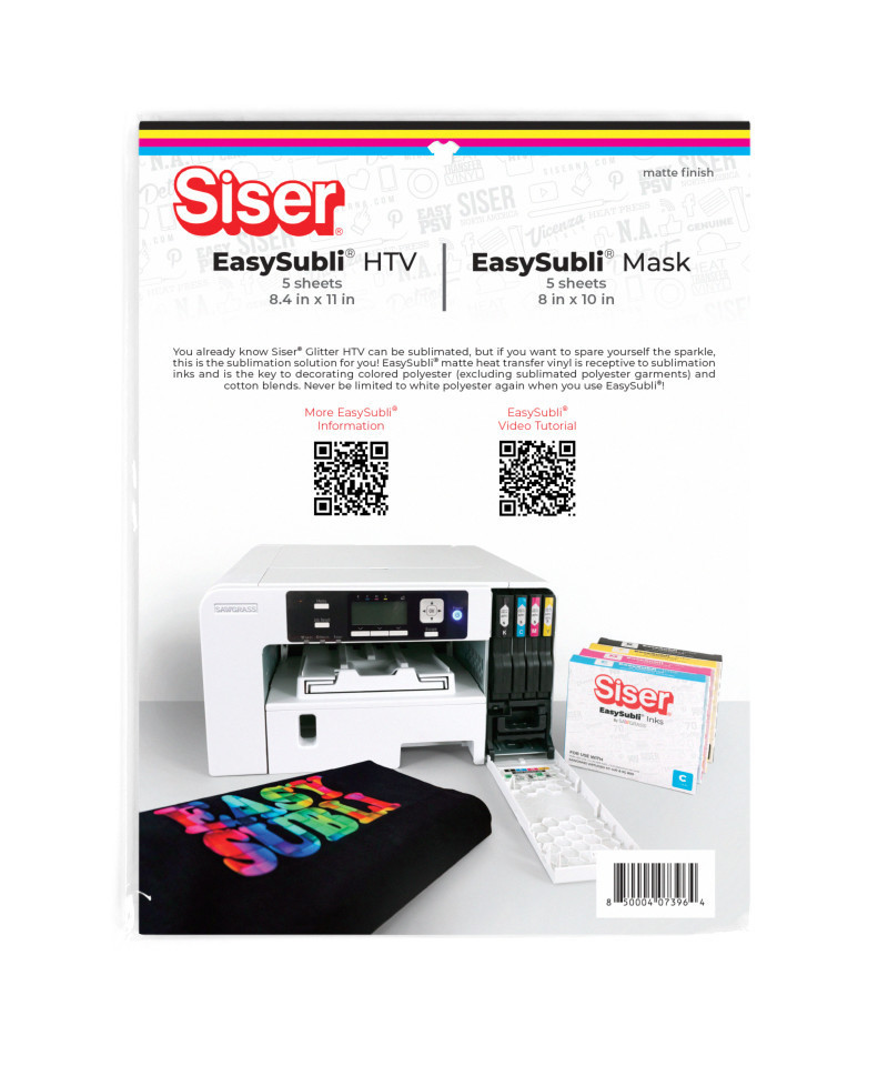 Siser EasySubli HTV & Mask Bundle – Sublimate on More Than Just White Polyester! Take your sublimation projects to the next level with this Siser EasySubli HTV & Mask Bundle, designed to expand your creative possibilities beyond traditional white polyester. EasySubli matte heat transfer vinyl is specially formulated to work with sublimation inks, allowing you to decorate colored polyester and cotton blends with vibrant, high-quality prints. The included EasySubli Mask ensures a seamless transfer process by securely bonding to the printed HTV without smearing or damaging the ink. Simply use a squeegee to apply the mask, align your design, heat press, and peel away effortlessly. Whether you're personalizing apparel, accessories, or home décor, this bundle provides everything you need for flawless sublimation results on a wider range of materials.