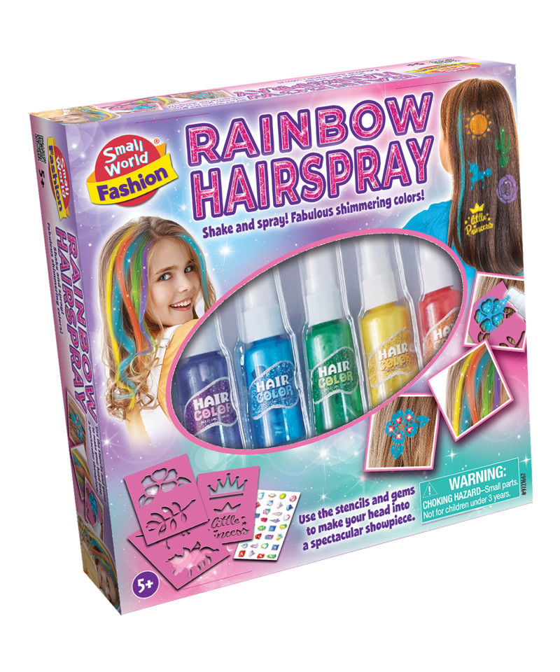 Add a pop of color and sparkle with the Rainbow Hairspray Kit, a fun and creative DIY fashion set designed for kids ages 5 and up. This exciting kit lets children shake and spray fabulous shimmering colors onto their hair, then use included stencils and gems to transform their hairstyles into dazzling, personalized showpieces. Perfect for imaginative play, dress-up, or special occasions, the Rainbow Hairspray Kit encourages self-expression, creativity, and hands-on fashion fun. With all supplies included, kids can safely create vibrant, head-turning hairstyles at home.