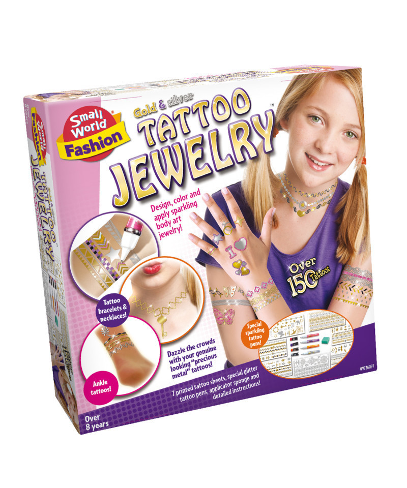 - Complete DIY body art kit – Includes metallic jewelry tattoos and tattoo pens.