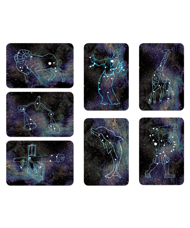 - Translucent, tear-resistant cards featuring astronomically correct constellations.