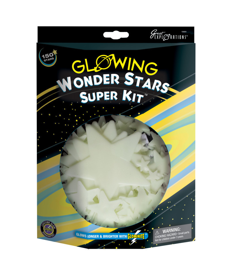 Transform your ceiling into a starry sky! This kit comes with 150 stars in a galaxy of sizes and safe, re-useable adhesive putty. A star chart is included, so you can create classic constellations or make your own astronomical arrangements. Whatever twinkles your star! A special phosphorescent formula gives these glow-in-the-dark stars a life that's almost as long as the real thing: they're rechargeable so they won't wear out. Just expose them to light and they're ready to glisten once more.