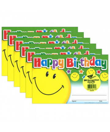 Printed on sturdy heavy stock paper, these awards will become keepsakes for the youngsters who receive them. Write-on lines allow for personalized birthday messages that are sure to build self-esteem. Awards measure 8-1/2" x 5-1/2". Each pack includes 30 awards. Sold as 6 packs for a total of 180 awards.