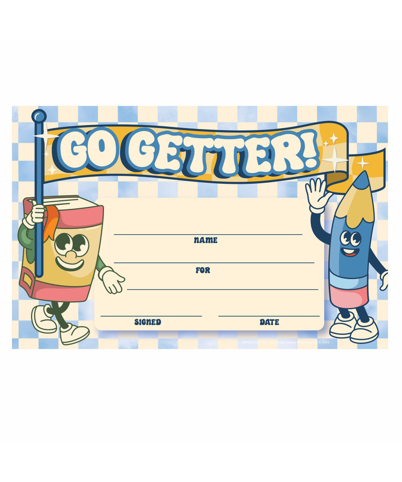 Recognize students' achievements, hard work and birthdays with bright, colorful Eureka Recognition Awards. Individual awards measures 8-1/2" x 5-1/2". Bring the cool to school with S'Cool Era Collection! Products feature a fun mix of motivational phrases, trendy checkered prints, and retro school icons! Each pack includes 36 identical awards.