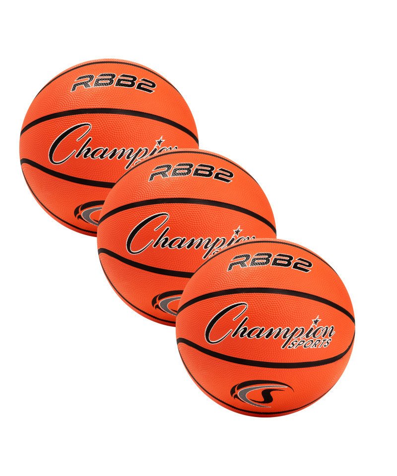 The Champion Sports Pro Rubber Basketball is designed for junior players getting into the game. The rubber basketball is made with a 2-ply butyl bladder that has been wound with nylon for improved shape and air retention. The size 5 ball is significantly lighter than an official league basketball and much easier for small hands to grip and control. It comes in orange and features heavy-duty construction to help it stand up to even the most powerful shots. Pack of 3 basketballs.