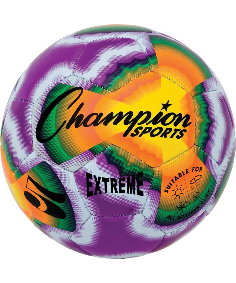Great for recreational and competitive league games and practices in any kind of weather conditions, the Champion Sports Extreme Soccer Ball is designed with a soft-touch TPU cover for a soft feel without compromising the ball's weight and striking power. The butyl bladder offers exceptional air retention, and the patented machine-stitch technology of the panels offers added durability, ensuring this size 5 all-weather soccer ball will hold up to play in any kind of conditions. Size 5.