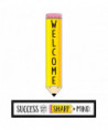 Use this Doodle Pencil Welcome Banner anywhere you need a bright message or bit of inspiration! This versatile 2-sided banner features a different message on each side—Side 1: "Welcome" and Side 2: "Success Begins with a Sharp Mind." It can be used during back-to-school to welcome students and parents then flipped over for a motivational message for the rest of the school year. The bright design and positive messages make this banner perfect to use in so many places—the classroom, home, a school office, a hallway, a daycare, and more! The fully assembled banner measures over 3 feet wide! Banner measures 39" x 8".