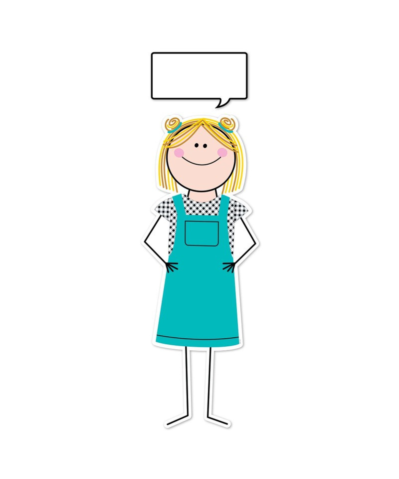 • Make messages on bulletin boards, doors, and wall displays memorable with this happy, giant stick kid figure and speech bubble.