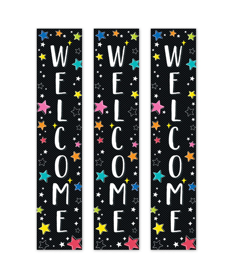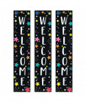 - WELCOME – The vertical message on this banner offers a big welcome that is perfect for greeting a new class of students or visitors on back-to-school night or open house.