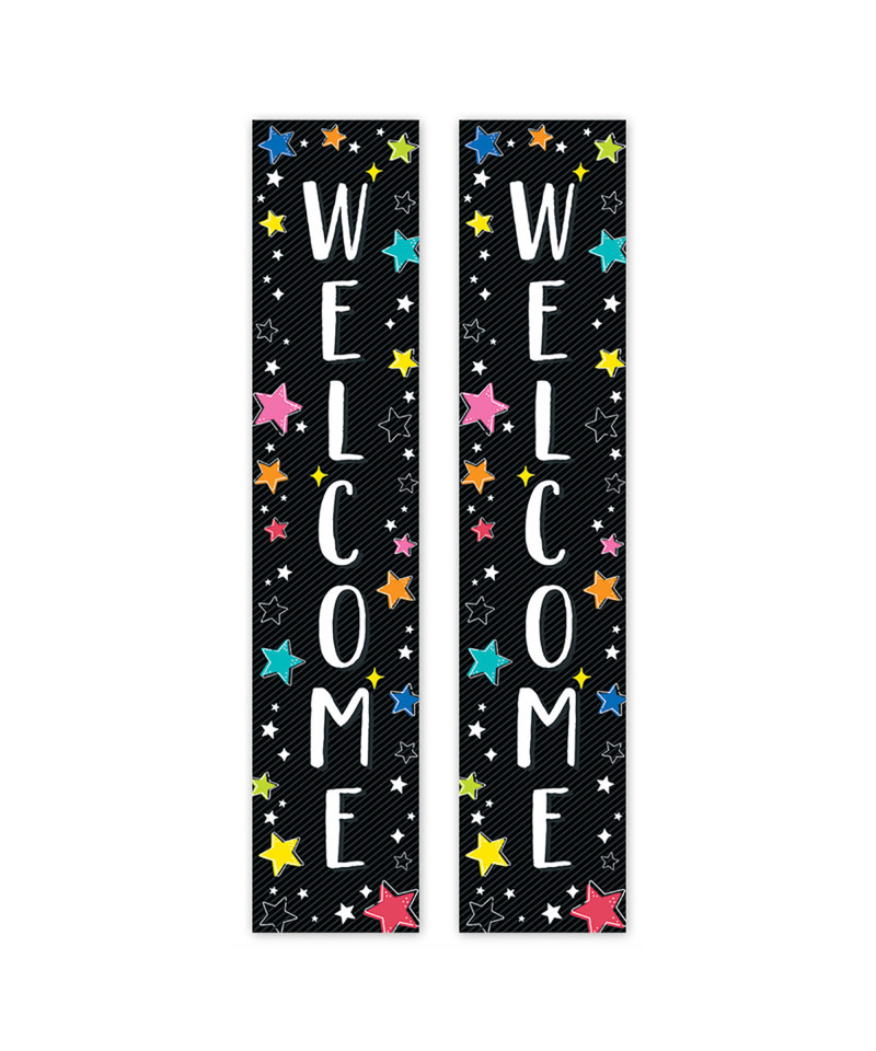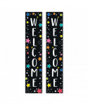 - WELCOME – The vertical message on this banner offers a big welcome that is perfect for greeting a new class of students or visitors on back-to-school night or open house.