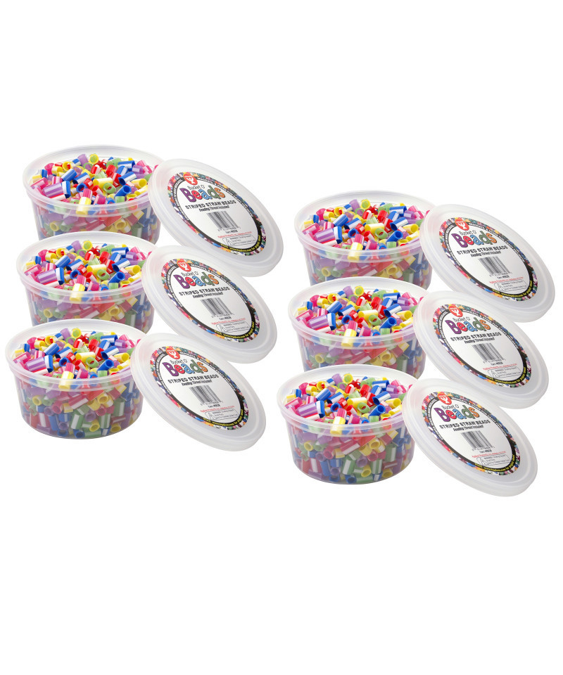 Hygloss Striped Straw Beads are a favorite craft bead for young children. These multi colored opaque striped beads are strong and durable, and have wide holes. That's easier beading for small hands! Package includes Beading Thread. Beads are sold in buckets, making it easy to clean up and store for later use. Each pack includes 300 beads, handy storage container, and beading thread. Sold as 6 packs for a total of 1800 beads.