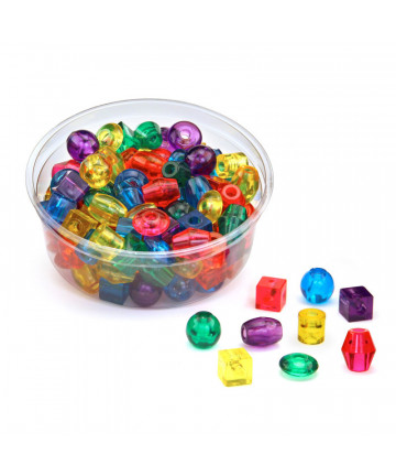 Big Beads are sure to keep little ones stimulated and happy. The beads are excellent quality and can be reused over and over. Help children develop fine motor skills, hand-eye coordination, color differentiation, sorting and grouping with these fun and vibrant Big Beads. Translucent beads come in 6 different shapes: cubes, balls, ovals, saucers, cylinders, bicones. The large holes make it easy to thread. Lacing lanyard included. Beads range in size from 3/4"-1". Preschool teachers enjoy using these beads as a fun and relaxing educational activity. Each pack includes 16 oz (approximately 100 beads). Sold as 2 packs for a total of 32 oz of beads.