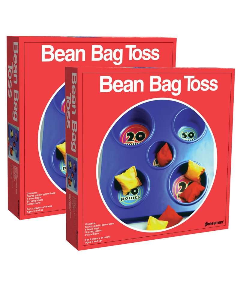 Like horseshoes and darts, the old-fashioned and beloved game of beanbag toss will never go out of style. Children and adults adore this simple aim-and-toss challenge. But more than the throwing skills, everyone delights in handling the soft, nubby bags stuffed with real beans. This package comes with a navy-blue, plastic game base containing five wells. The two larger wells are only worth 20 points a hit, the two medium-size ones are worth 50 points, and the tiny well in the middle is worth a whopping 100. This age-old game is not as easy as it looks, with concentration and careful release of the bags being the keys. Comes with three red and three yellow beanbags. Sold as a pack of 2 games.