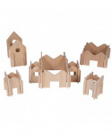 Create your own cities and towns with this Happy Architect set! Made of smooth Birch plywood, this 28-piece wooden play set is suitable for ages 2+. An open-ended activity for unstructured play, these blocks feature a stunning, all-natural wooden feel. Children can build a castle, dollhouse or even a zoo, only limited by their imagination! It includes a variety of wooden sized pieces with different shaped windows and high doors. The pieces are coated with non-toxic lacquer and feature pre-cut grooves for easy set up. Sizes range from 9.7"H x 5.7"W to 5.7"H x 4.6"W.