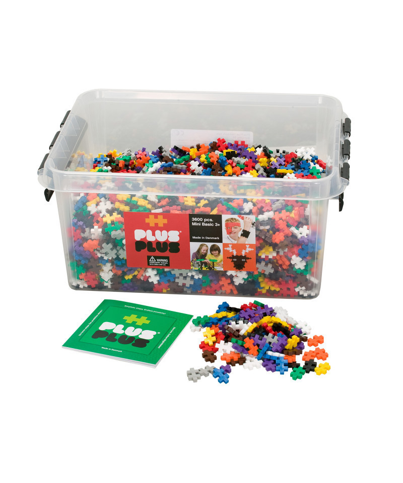 Plus-Plus is a whole new class of construction toy! One simple shape contains endless possibilities and hours of fun. Each piece easily connects to the next and lets your imagination create colorful flat mosaics or work in 3-D to make more intricate builds. Even curves are possible thanks to the unique design of this deceptively simple shape! A perfect STEM toy to develop fine motor skills, focus and patience - as well as design, imagination and creativity! All Plus-Plus sets are compatible with each other and this open play set adds more pieces and colors to the collection for more possibilities and fun. This 3,600 piece set contains Basic Colors, including Red, Blue, Green, Yellow, Orange, Purple and more. Also includes a reusable storage tub an Idea Guide Booklet for building. BPA-free and phthalate-free. Designed and made in Denmark.