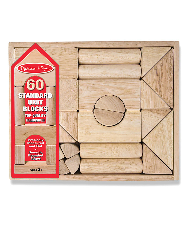 Build upon your child's imagination with this high-quality, solid wood building block set. The wooden blocks are made from durable hardwood, are precisely measured and cut, and feature smooth, rounded edges. The set includes 60 standard unit blocks in a variety of shapes and sizes to inspire creativity and developmental learning fun. They're ideal for building, balancing, and facilitating play with other toys such as building a house for a favorite doll, making a car garage or a stuffed animal's cozy bed. They can also help introduce early math concepts including shapes, parts-to-whole, and sorting, as well as help kids develop hand-eye coordination and patience. The natural-finish, smooth-sanded hardwood blocks are packaged in a handsome wooden crate for easy storage, making clean up a breeze. The exceptional quality and opportunities for open-ended play make this traditional wooden block set an excellent value. The possibilities are endless! It makes a wonderful gift for kids ages three and older.