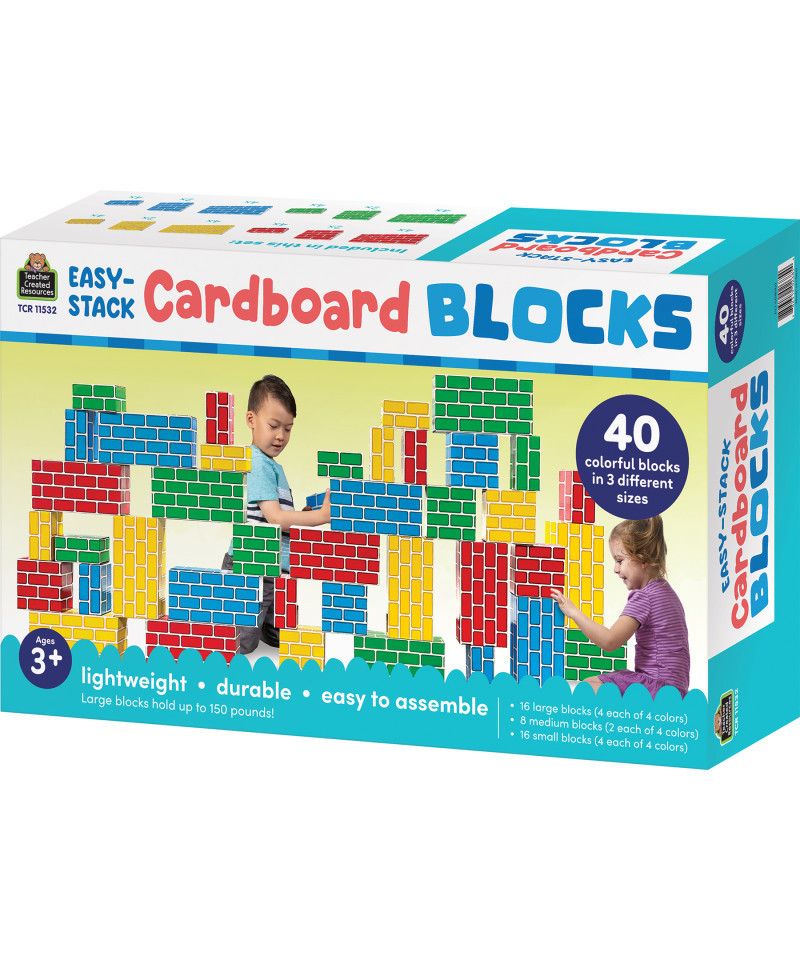 Unleash boundless creativity and build a world of fun with building blocks designed to inspire endless hours of imaginative play. These sturdy blocks are the perfect foundation for constructing towering structures, fantastical forts, and everything in between. After each build, knock the bricks down and build them up again! Large blocks hold up to 150 pounds. Smooth surfaces allow for easy cleaning and sanitizing. Adult assembly required. Includes illustrated instructions and 40 colorful blocks in 3 different sizes: 16 large, 8 medium, and 16 small blocks.