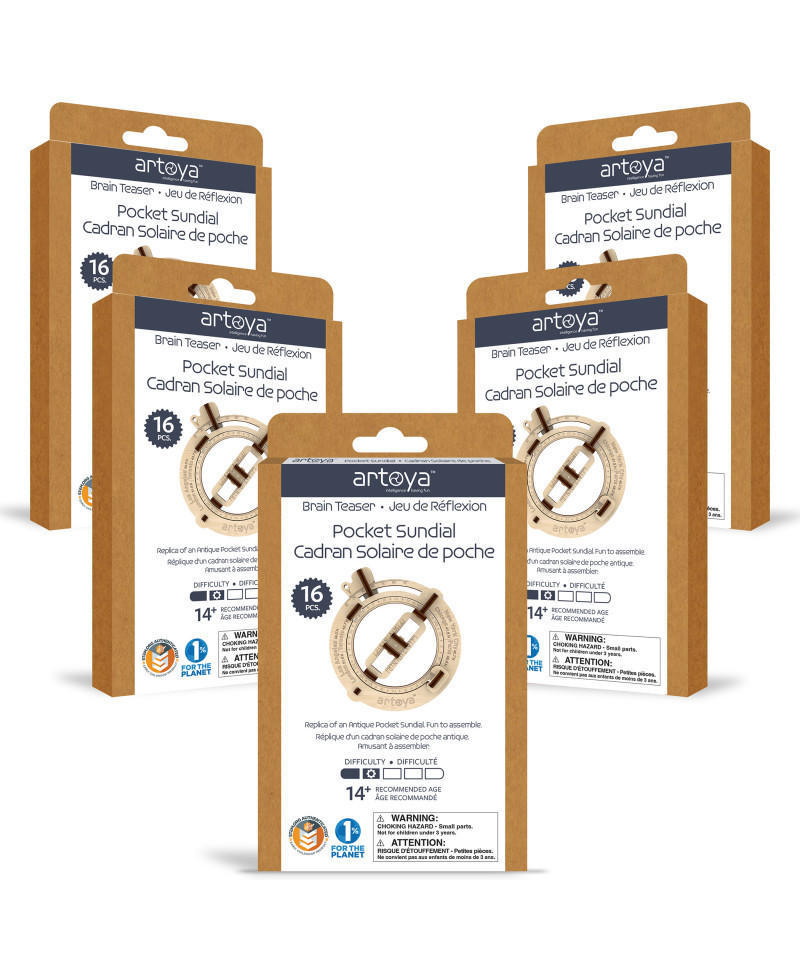 The artoya Pocket Sundial 3D Wooden STEM Model is a must-have for any adventurer or navigator! This multi-pack includes 5 identical items, making it ideal for classes and group activities. With a rich historical significance, this sundial allows you to determine time based on the season and latitude, just like the navigators of old. Not only is it a functional timepiece, but it also serves as an educational tool, sparking curiosity in inquisitive minds. Give the gift of knowledge with this original and truly unique sundial. It's the perfect present for anyone with a thirst for exploration and learning.