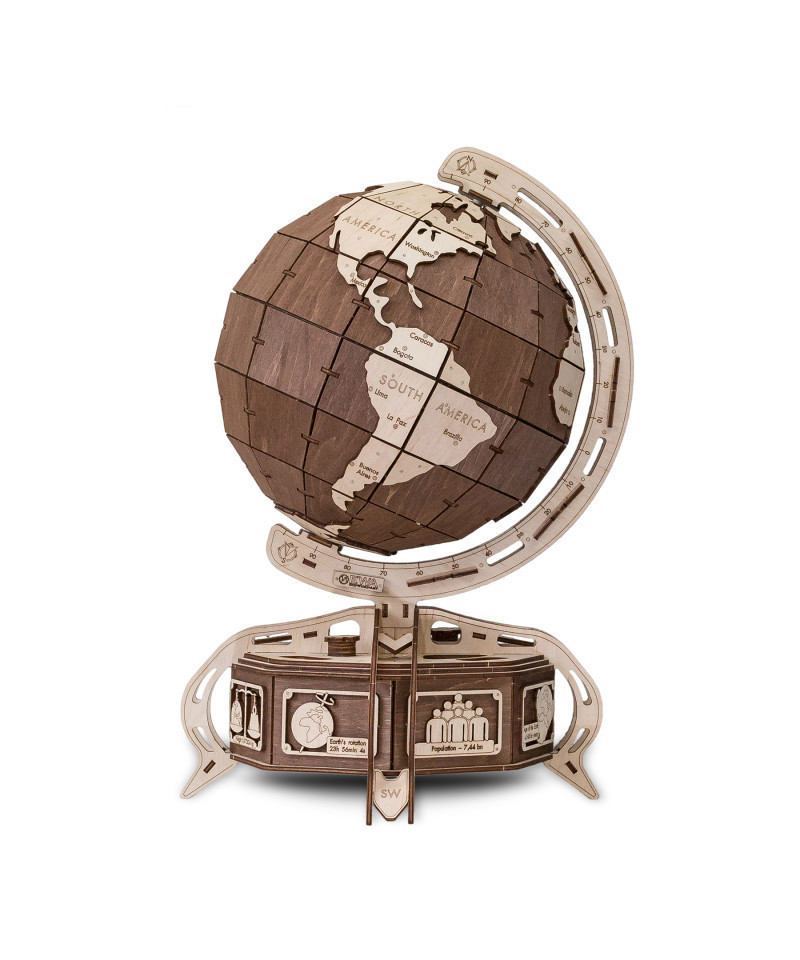Explore the wonders of the world with our globe that allows you to travel the earth and uncover continents and major cities. This beautifully designed globe rotates smoothly on its axis, giving you a realistic experience. Mounted on a stunningly decorated pedestal, it also features interesting facts about the earth, making it educational and captivating. But that's not all - hidden within the base, you'll find a secret lock compartment, adding an element of mystery and intrigue to this remarkable globe.