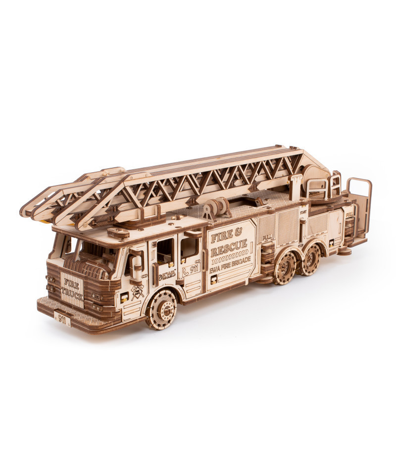 This large fire truck 3D construction model is perfect for those who enjoy hands-on building projects. With a wind-up rubber-band mechanism and key activation, this model features a retractable and rotating fire ladder, rotating front wheels, opening front doors, and retractable truck stoppers for added realism. Ideal for both kids and adults, this highly detailed and realistic representation of a fire truck can be easily painted and decorated to make it unique and personalized.