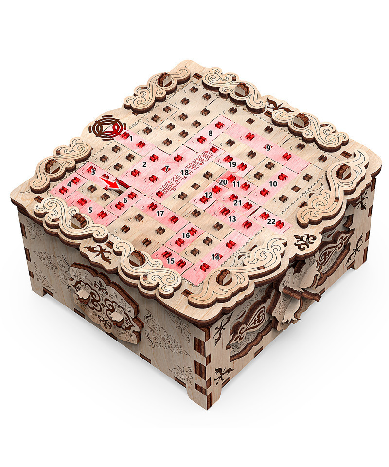 Introducing the "Floral Fantasy" 3D puzzle, a captivating wooden secret box that combines beauty and functionality. Crafted with precision, this exquisite box serves as an elegant container for keeping your secrets and treasures secure. Unlock the box using the cleverly located logical key on the top, adding an element of intrigue to your secret-keeping. Designed for individuals aged 14 and above, this puzzle offers an engaging assembly process and a functional purpose for storing cherished items. Join this series of games and puzzles and experience the joy of creating and owning the "Floral Fantasy" secret box.