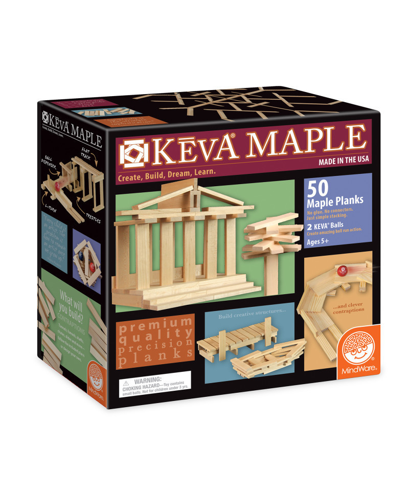 Create amazing ball runs, castles, bridges, skyscrapers and more with richly grained, precision-cut maple planks. No glue or connectors required. Maple planks are strong and durable for years of monumental building fun. Planks are made in the USA. 50-Plank Set.