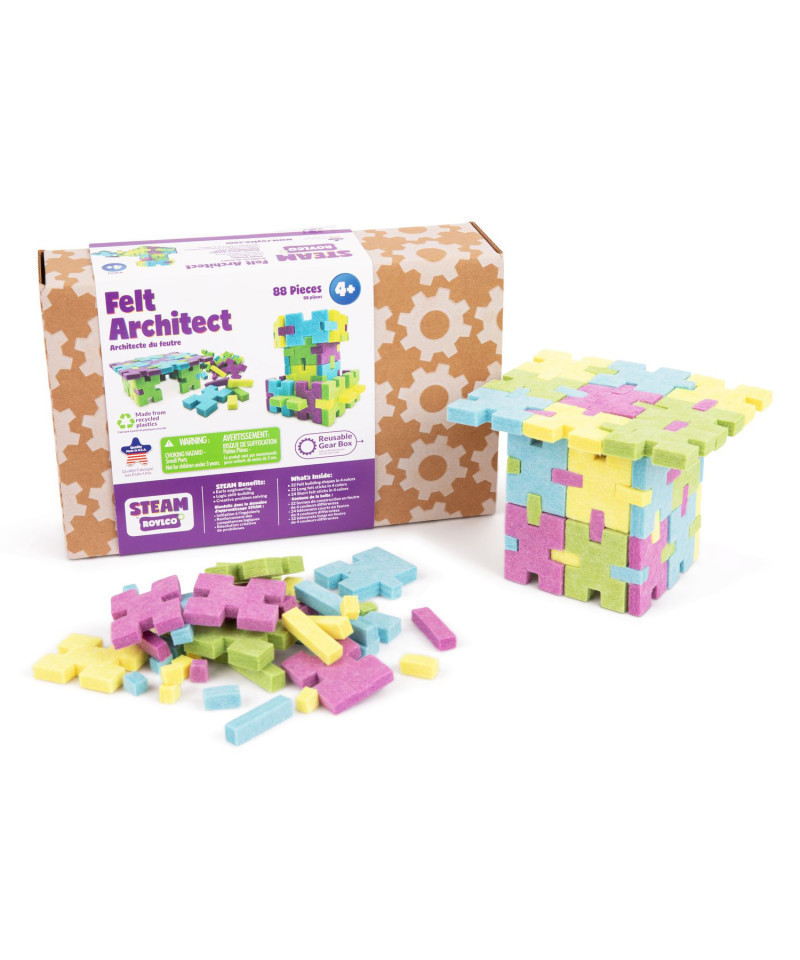 - Includes 88 pieces: 32 felt building shapes in 4 colors, 32 long felt sticks in 4 colors, and 24 short felt sticks in 4 colors.