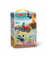 Melissa & Doug Blockables™ are connectable, stackable, and playable! The solid wood connect-and-play building blocks are perfect manipulatives to help preschoolers two and older boost developmental skills (fine motor, problem-solving, matching, storytelling, and self-esteem), while using their imaginations and having fun. Easy-to-grasp smooth, colorful wooden blocks fit together in a snap with large connectors that even little hands can push in and pull out. An illustrated guide shows how to arrange and link the Blockables™ to create multi-textured farm animals and equipment (a tractor and trailer, cow with felt horns, sheep, pig, horse, chicken with felt wings, food, and a hay bale), or kids can use their imaginations to mix, match, and combine pieces to make unique creations and play their own way! Kids can easily expand their collection -- the 56-piece Farm Play Set is compatible with all other Blockables™ play sets. The packaging folds out to convert into a fun play space and pieces store in the sturdy corrugated box with a soft handle for easy cleanup and portability. Patent pending.