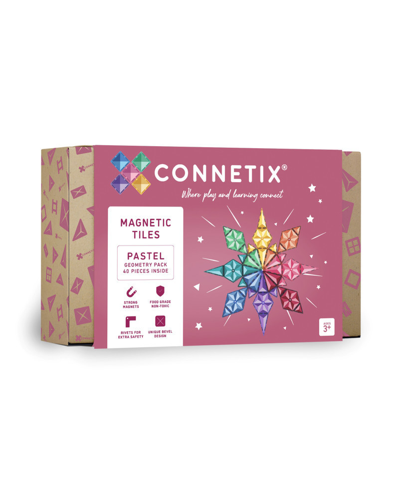 - COMPATIBLE WITH LEADING BRANDS - Compatible with the entire Connetix range as well as other leading magnetic tile brands, the CONNETIX 40 Piece Pastel Geometry Pack provides the perfect gift to introduce to magnetic play or supplement an existing collection.