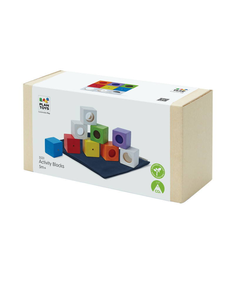 - MULTISENSORY EXPLORATION: The PlanToys Sensory Activity Blocks set features 9 unique blocks, divided into 3 categories: visual, auditory, and tactile. These blocks provide children with a rich sensory experience, engaging their sight, hearing, and touch. The combination of bright colors, soft textures, and interactive sounds helps foster sensory development while keeping kids entertained.