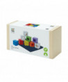 The PlanToys Sensory Activity Blocks set offers a rich multisensory experience with nine unique blocks designed to engage children’s visual, auditory, and tactile senses. Featuring bright colors, soft textures, and interactive sounds, this set promotes sensory development while keeping little ones entertained and curious. Inspired by Montessori principles, these blocks encourage hands-on learning that supports cognitive growth, motor skills, and problem-solving abilities through play. The included storage bag makes cleanup and organization effortless, perfect for busy parents and caregivers. Crafted sustainably from eco-friendly rubberwood and finished with non-toxic, water-based paints and formaldehyde-free glue, these blocks are safe for babies and kind to the planet. An award-winning educational toy, the PlanToys Sensory Activity Blocks have received global recognition for fostering fine motor skills, sensory integration, and early learning development.