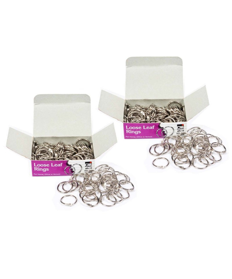 Versatile rings feature precision snap lock closures. Ideal for samples, swatches, loose-leaf material and more. Bright nickel-plated rings are rust-proof. Rings measure 0.75" diameter. Each box includes 100 rings. Sold as a set of 2 boxes, 200 rings total.